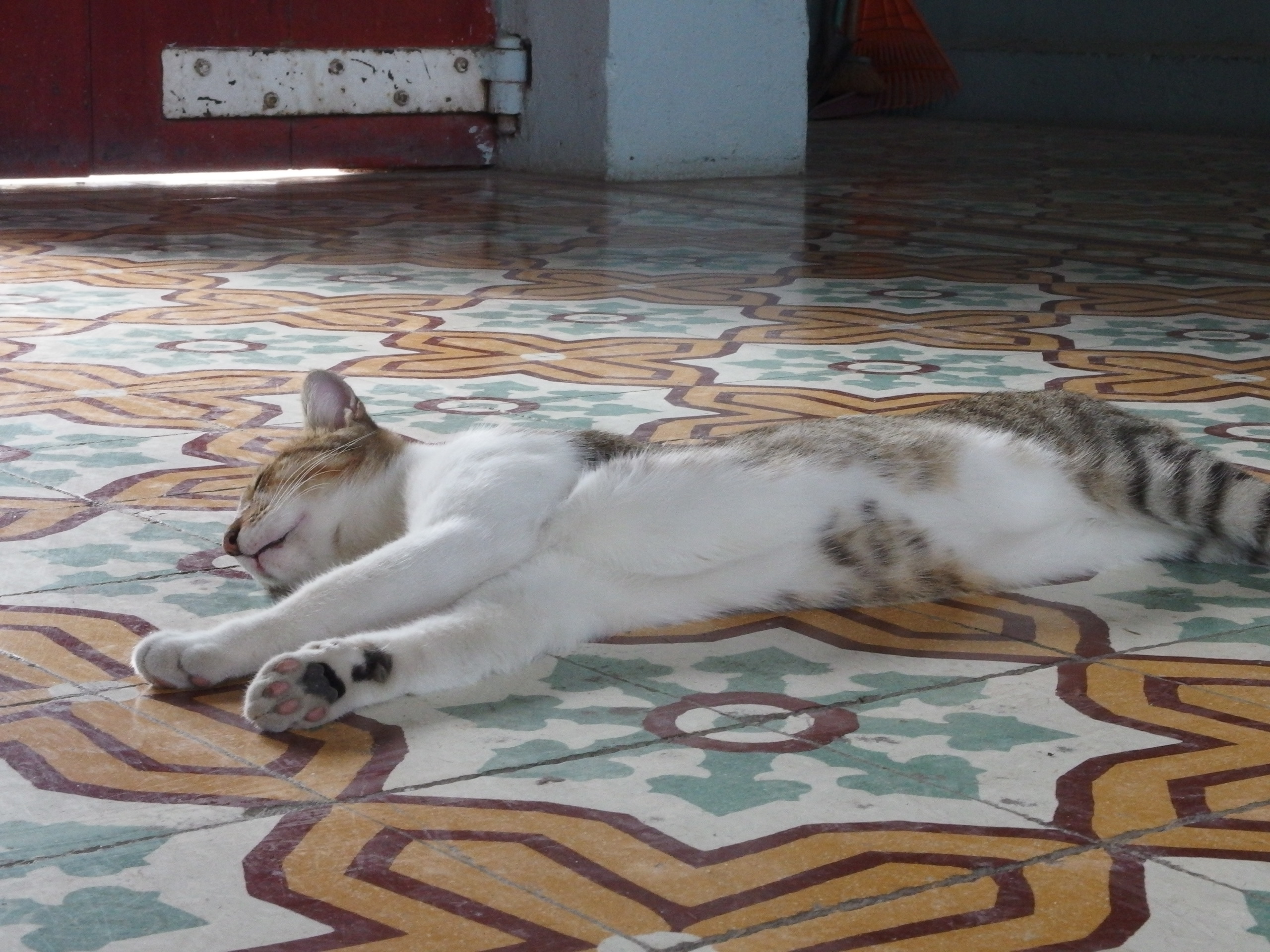 Besser wurde es auch in den Isolationszellen nicht. Bedrückend eng, und obwohl mittlerweile die Decken fehlten ist es bedrückend eng – das ist also auch kein besserer Platz. Hier wollte man nicht einsitzen und ich hoffe, dass das Gefängniss schon lange im Ruhestand ist. Der Lichtblick dieses Ortes ist der tierliebe Aufseher, der uns begrüßt und verabschiedet und seine beiden “Siesta-“Katzen. Zuckersüß aber auch genauso faul. Wie die meisten Ticos ist er bemüht mit uns zu sprechen, leider verstehen wir nicht viel, aber sicher ist, dass er seine Katzen liebt und dass er uns die Weltmeisterschaft gönnt und er sich besonders über den Sieg über Brasilien freut – so wie eigentlich jeden Tico.