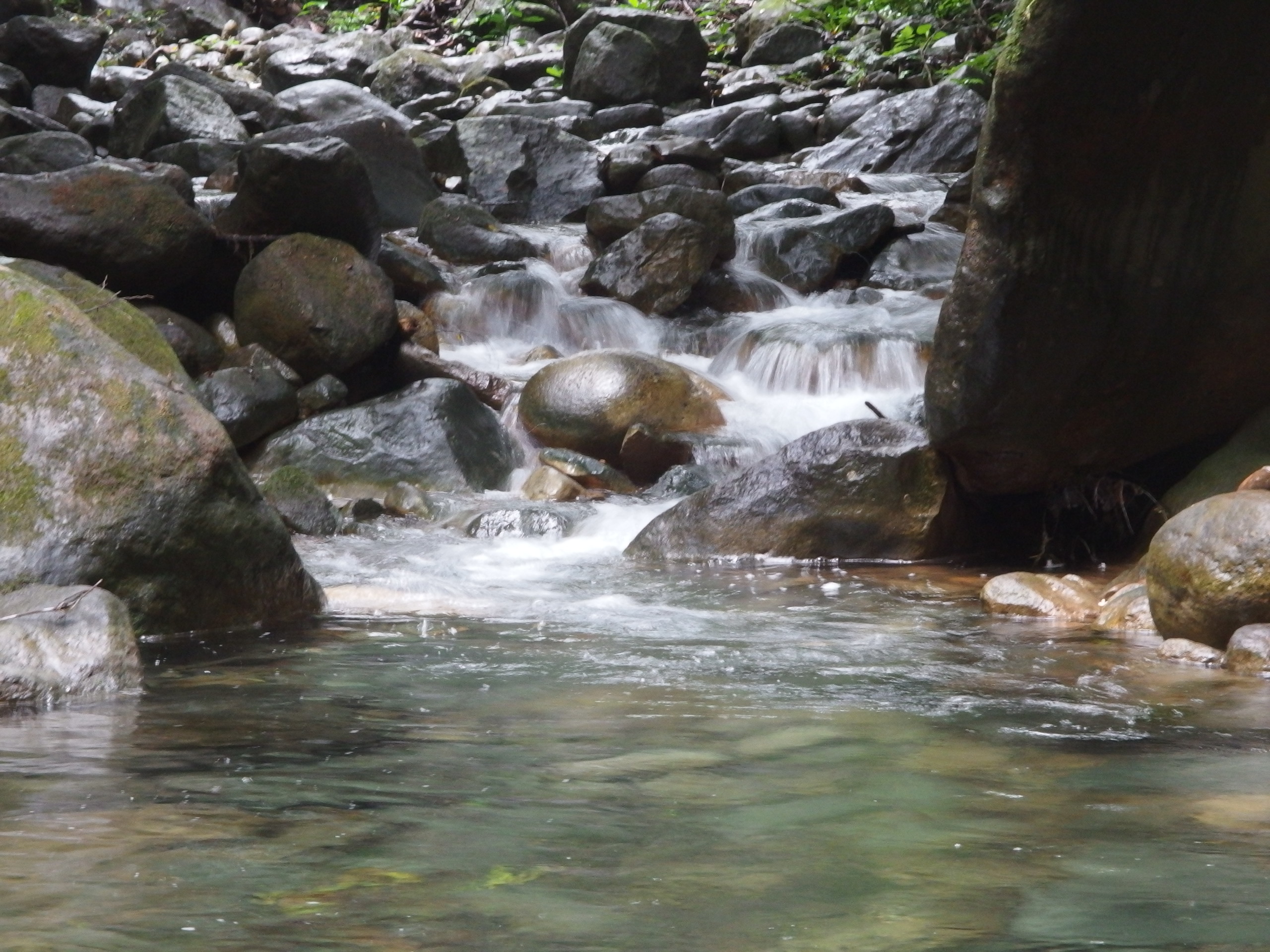Wir klettern also weiter und dem Lorca schwant Böses, denn das ganze Stück muss er auf wieder zurück. 5 km ist der Weg lang und das schlimmste soll noch kommen. Ich verfluche mich und jedes Gramm zu viel an mir. Zuhause machst du Aquajogging, wie es sich für nen Lorca gehört, so groß war die Verzweiflung ob des Rückweges und mit jedem Stein und jedem Schritt nahm sie zu. Nach 5 km aber die Belohnung. Man hört ihn schon früher, aber sehen konnte man ihn erst kurz vor dem Ziel. Das blaue Wasser blitzt durch eine Lichtung noch ein paar Schritte und das ist die Postkarte – nur eben in echt. Was ein Kampf, aber einer der sich gelohnt hat. Ich hoffe die Bilder spiegeln es einigermaßen wieder.