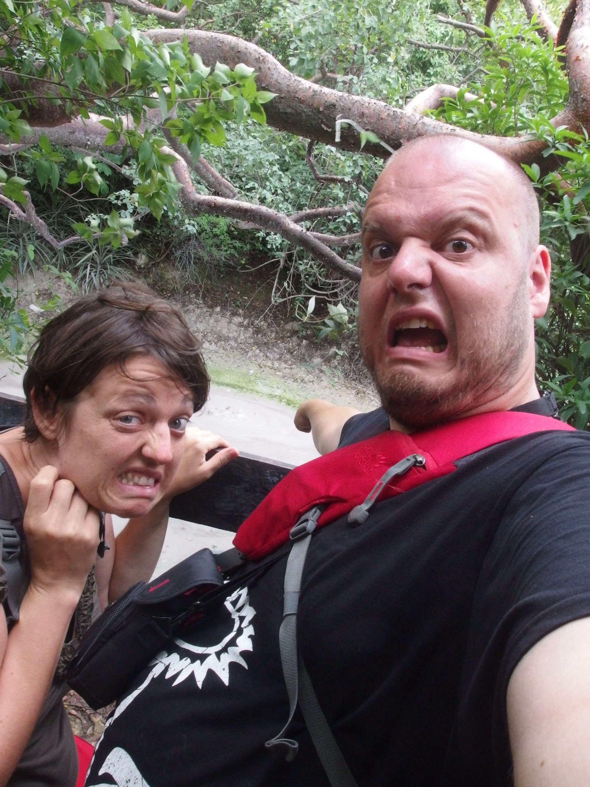 Wir gehen in den Urwald und sind froh, dass die Sonne nicht so knallt. Das ist zwar für die Fotos nicht die beste Voraussetzung, aber bei vollem Sonenschein hätte man den Parkour nicht schadlos überstanden.